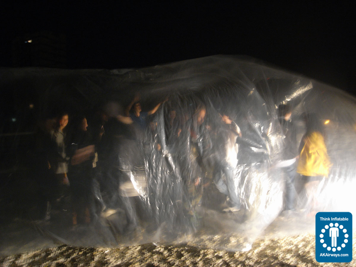 Buenos Aires Blow Sculptural instrument to be performed by the audience ![]() Event: I {Disorient} BA Venue: Rooftop Address: Niceto Vega 5043, Palermo, Buenos Aires, Argentine Date: April 19, 2009 Specs: Dimensions including floor (feet): 40 x 10 x 10 Material: clear polyethylene, fan Assembly: 6 hours, 2 persons Presentation method: sitting on the floor Set-up: 1/4 hours, 2 persons Break-down: 1/4 hour, 2 persons Buenos Aires Blow: