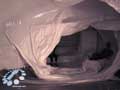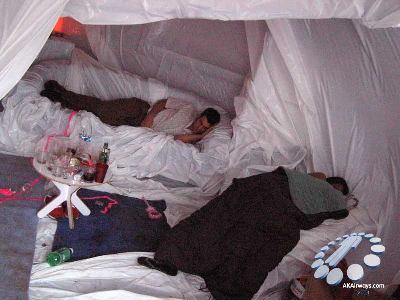 Caverna Magica An indoor negative shrink-wrap, with fireplace. ![]() Click to enlarge Pieces of furniture are recontextualized as an inflatable structure fills-up the inside of a barn. The large double-door becomes a window on the pool. The small barn door is used as the entrance of the inflatable. As people come in and out of the volume, large quantities of air escape from the door which makes the entire space breathe, transforming it into a "living" room. Event: Private Venue: Private, Red Bank, NJ Date: 20040710 Specs: Surface (square feet): 480 Overall dimensions (feet): 30 x 16 x 9 Material: 4 mil clear and white polyethylene, existing furniture, electric fireplace. Assembly: 2 hours, 3 persons Installation: 2 hours, 3 persons
