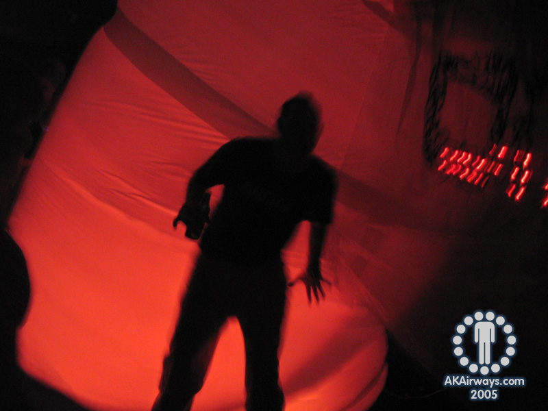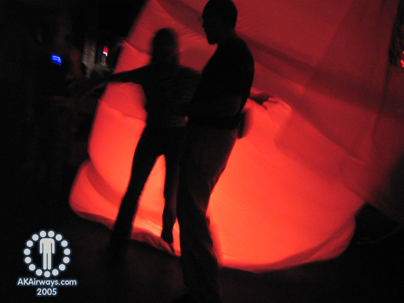House of Pornj Close encounter in a downtown bar ![]() Latenight dancers enjoy a Gogopod. Event: The House of Pornj, a fundraiser for Disorient Venue: 169 Bar, Lower East Side, New York City Date: 20050528 Specs: Overall dimensions (feet): 8 x 8 x 11 Material: 4 mil white opaque polyethylene. Assembly: 2 hours, 3 persons Installation: 10 minutes, 1 person Clean-up: 10 minutes, 1 person Gogopod at House of Pornj:
